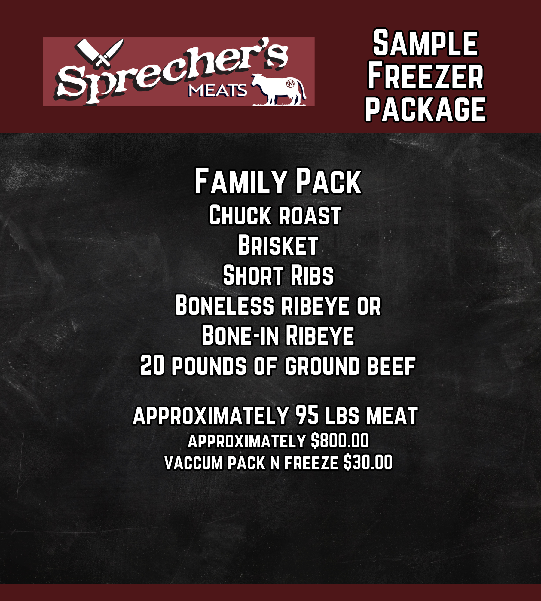 Our freezer plans make it easy to bring home a variety of high-quality meats at a great value. Whether you're feeding a family or just want to be prepared, we’ll help you build a plan that fits your needs. Our freezer plans make it easy. Choose a bundle or customize your own—we’ll prepare everything to your specifications.
